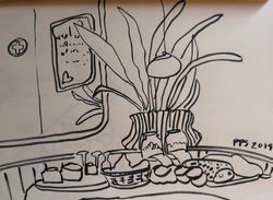 ![]() AT THEONE POINT Pen on paper A6 Swiss, 2.1.2020 | ![]() THE MUSEUM RIETBERG Pen on paper A6 Swiss/Zurich, 3.1.2020 |